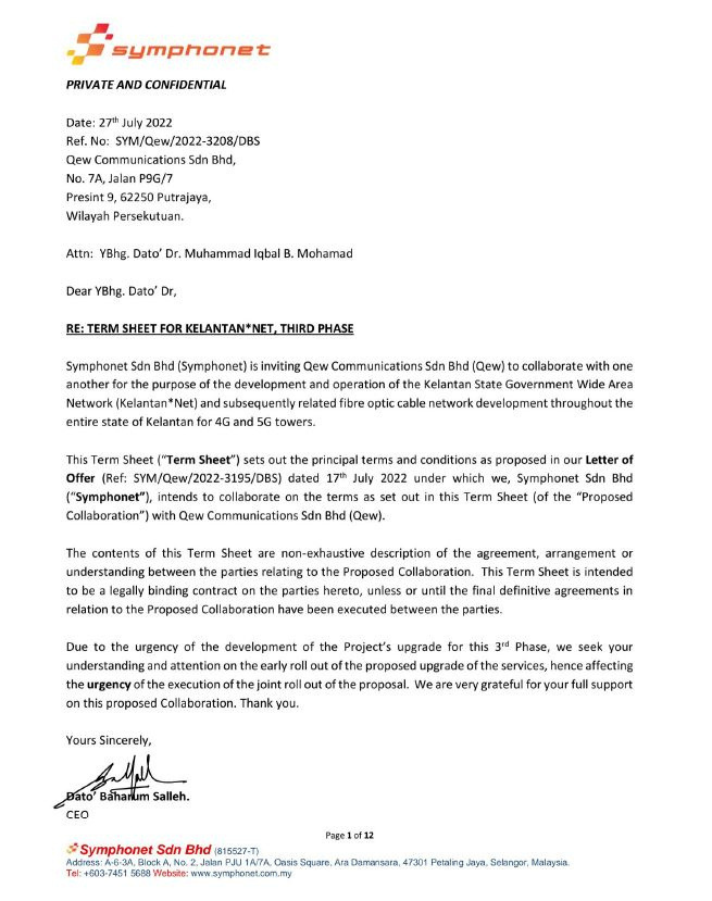 Contract Agreement between Qew Communications & Symphonet Sdn Bhd