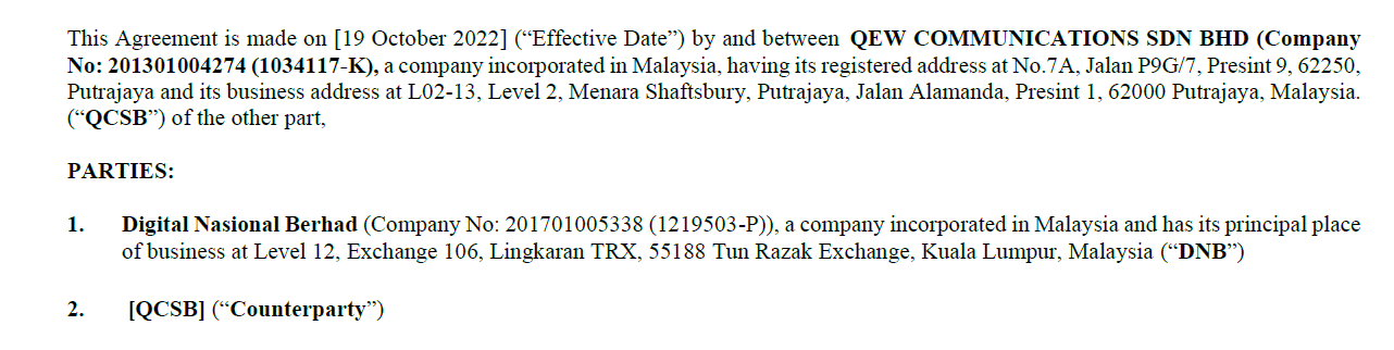 Contract Agreement between Qew Communications & Digital Nasional Berhad